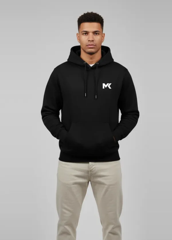- Subtle white MK logo on left chest