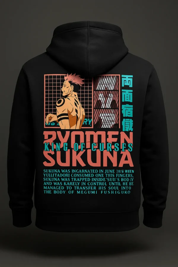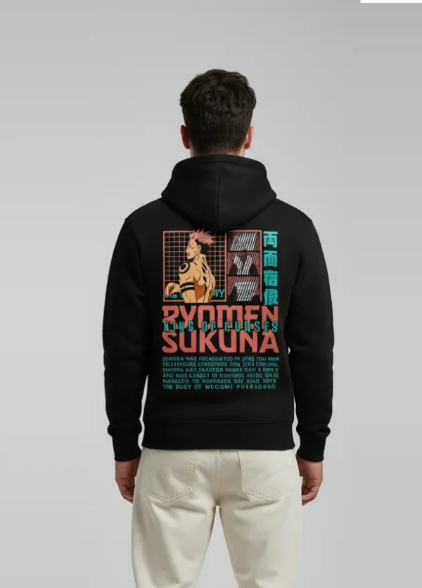 Wrap yourself in the Sukuna Hoodie. Premium fabric meets vivid “King of Curses” artwork inspired by the iconic Jujutsu Kaisen villain for standout street style.