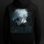 Celebrate your fandom with the Satoru Gojo Limitless Hoodie. High-quality cotton-blend, bold “Limitless” print inspired by the Jujutsu Kaisen series, and ideal for everyday anime streetwear.