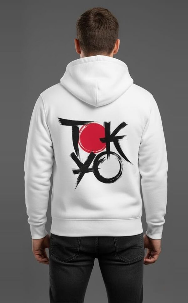 The Tokyo Street Hoodie blends minimalism and culture with its striking red sun and calligraphic Tokyo print — a perfect mix of fashion and urban energy.